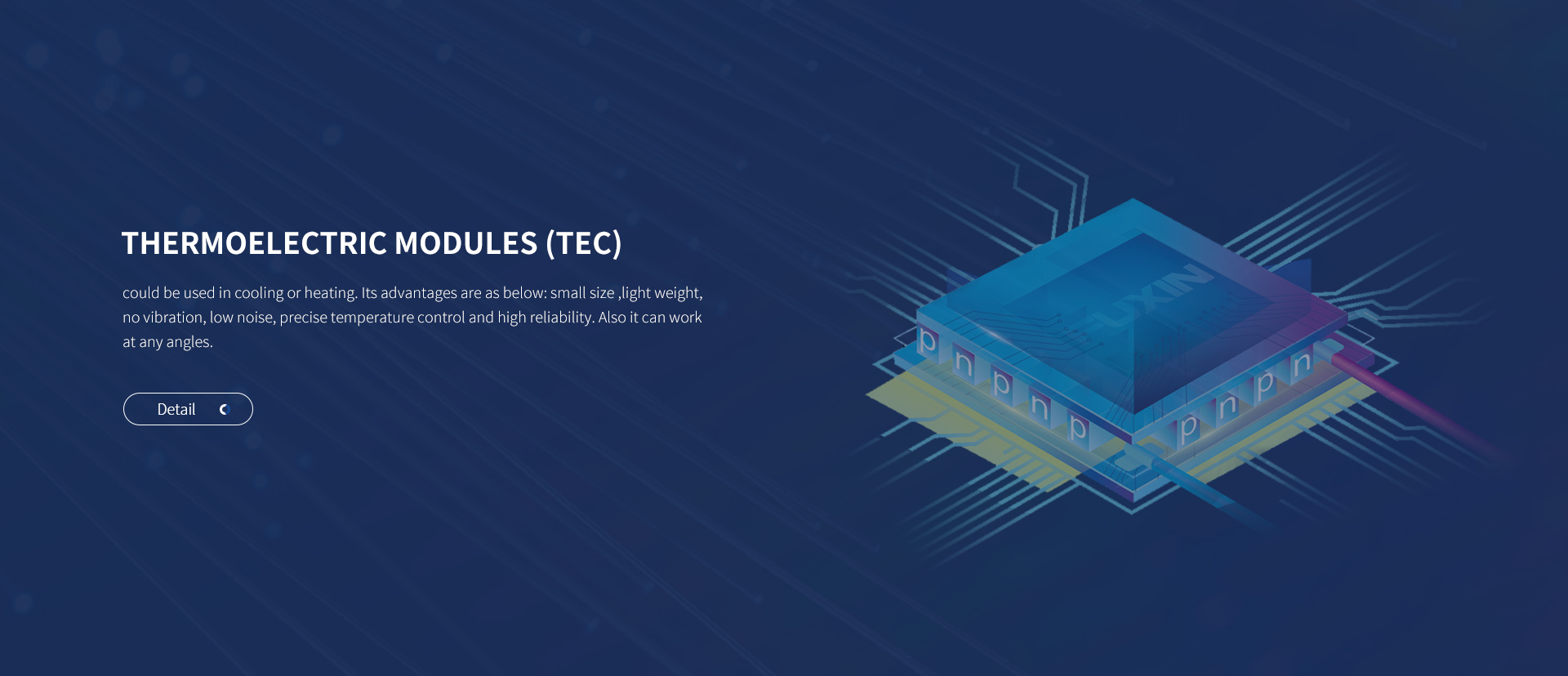 As the internal space of electronic products is limited, internal devices will generate a lot of heat when working. TEC size is small enough to control the temperature precisely. ...